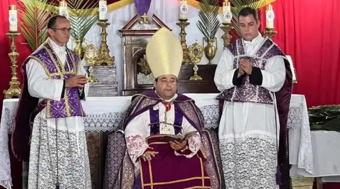 Today’s stories are unusually revealing because they put three things side by side that are usually kept apart: a Brazilian archdiocese using the vocabulary of schism to police the old Mass, a Rome style “vigil of prayer” that blends religious language across traditions like a tasteful civic ceremony, and then a sudden clerical panic when a purported “sedevacantist bishop” performs a baptism in a parish chapel that was mistakenly approved.
