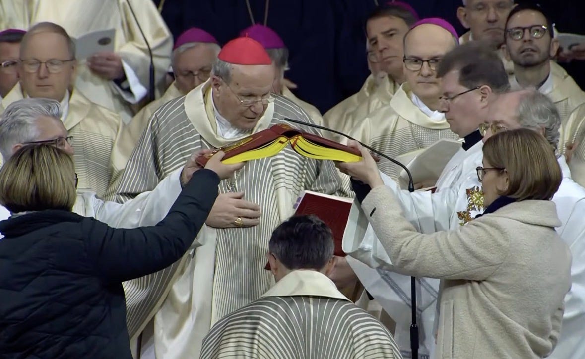 This is catechesis done by choreography. The modern Church has learned that words can be contested, documents can be footnoted, doctrinal statements can be hedged. Symbols bypass argument. They teach through the gut. A rite that visually suggests authority rising from the congregation through two laywomen trains people to imagine the Church as a community project rather than a divinely constituted society. It trains them to “feel” synodality as normal, to “feel” participation as the source of legitimacy, to “feel” the hierarchy as an expression of the people’s life.