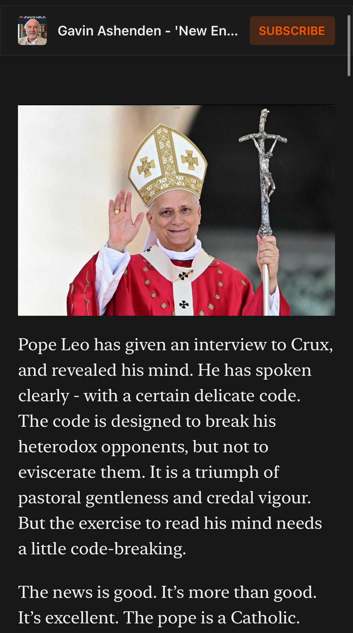 Gavin Ashenden goes full satire, insisting Leo’s ambiguous words are “coded Catholic broadside against the heterodox.”