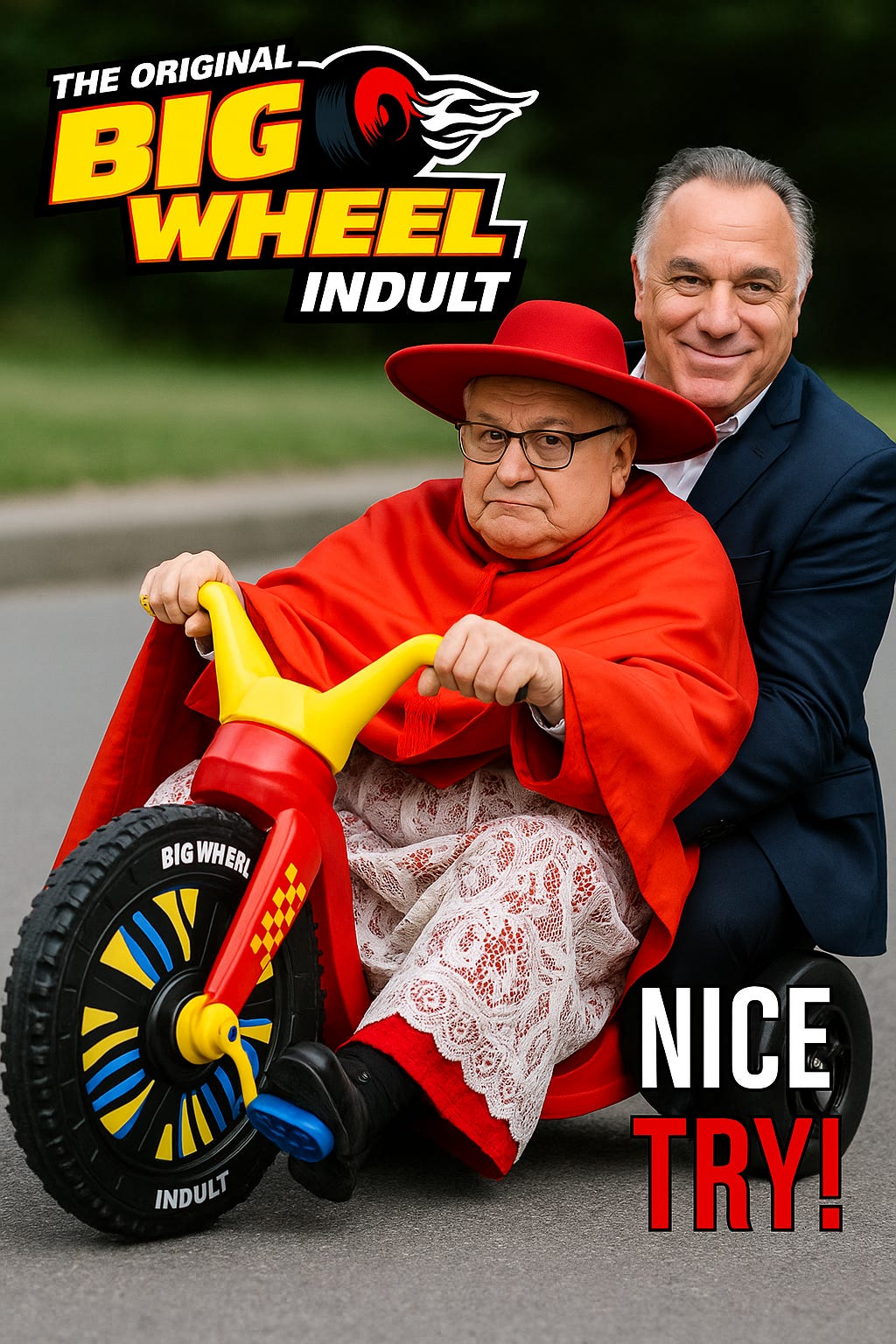 Now, after this entire drama, we are supposed to cheer because Leo may graciously hand us back the 1988 Big Wheel. Under Benedict you finally had the Ferrari in the driveway: the old Mass acknowledged in law, keys in the ignition. Francis and Leo confiscated it and locked the garage. Now, if you promise to zip it for 20 years, Leo hints he might rummage in the Vatican attic, drag out the sun-faded Big Wheel, dust it off, wrap it up, and roll it out with a ribbon on the handlebars.