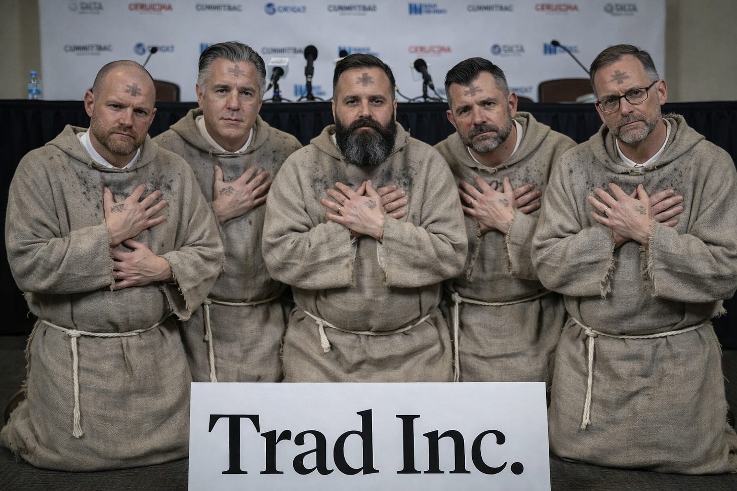 Trad Inc. has repented. Trump has discovered tradition. Leo has been knocked off his donkey into clarity. Rome has found the courage to purge its own demolition crew. Brother Michael Dimond is reorganizing the DDF like a man who has been waiting thirty years for somebody to hand him the keys. Sede Picante has seized a major media property with Kokx cash. Anthony and Rob have found dignified new callings in America’s service and pastry sectors.