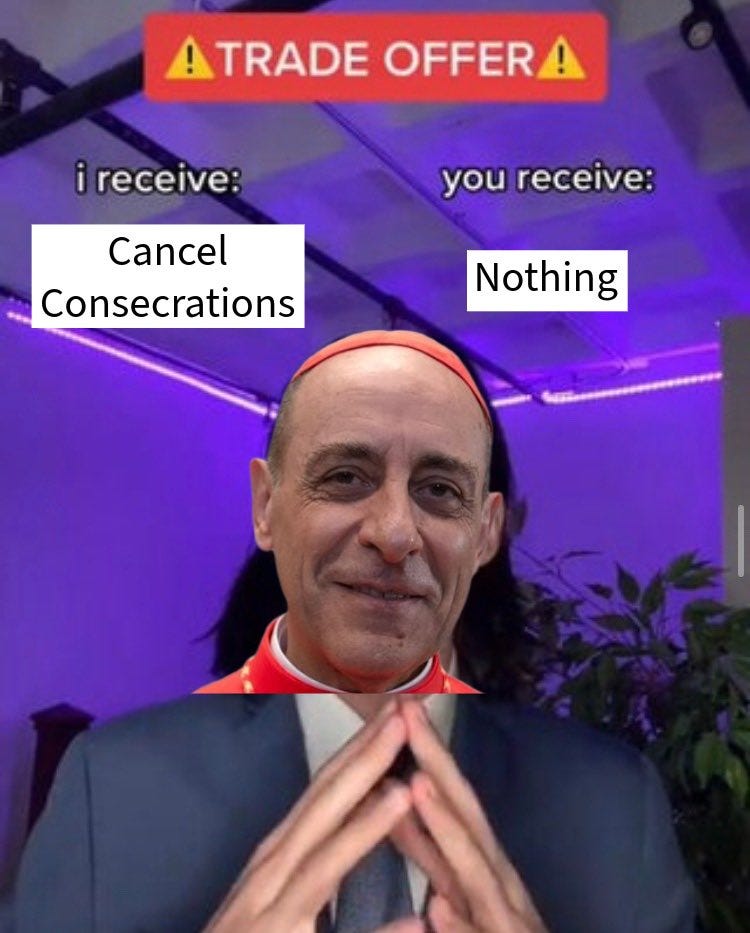 Rome’s communiqué answers with the velvet glove and the iron fist in the same paragraph. Dialogue is offered. A methodology is promised. “Minima necessary for full communion” becomes the new watchword. Then the condition drops: suspend the consecrations first.