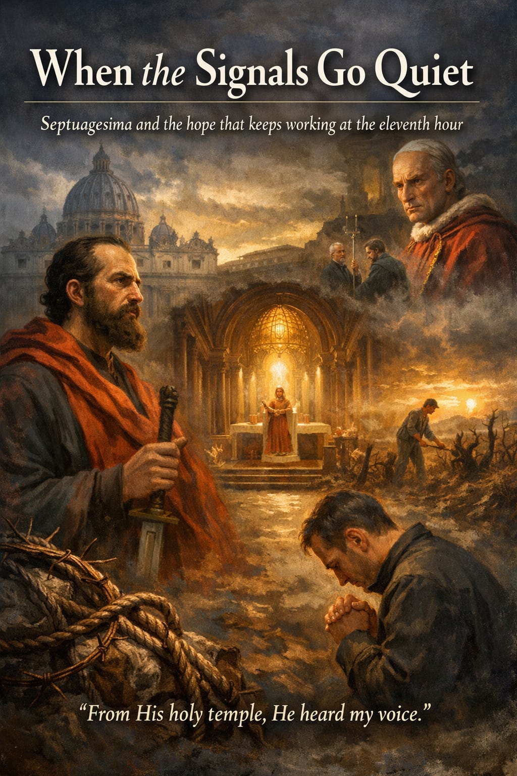 Septuagesima interrupts that cycle by returning to first things. A man prays. God hears. The life of grace survives without a running commentary. It survives without permission slips. It survives when the public face of Catholic life looks more like management than fatherhood.